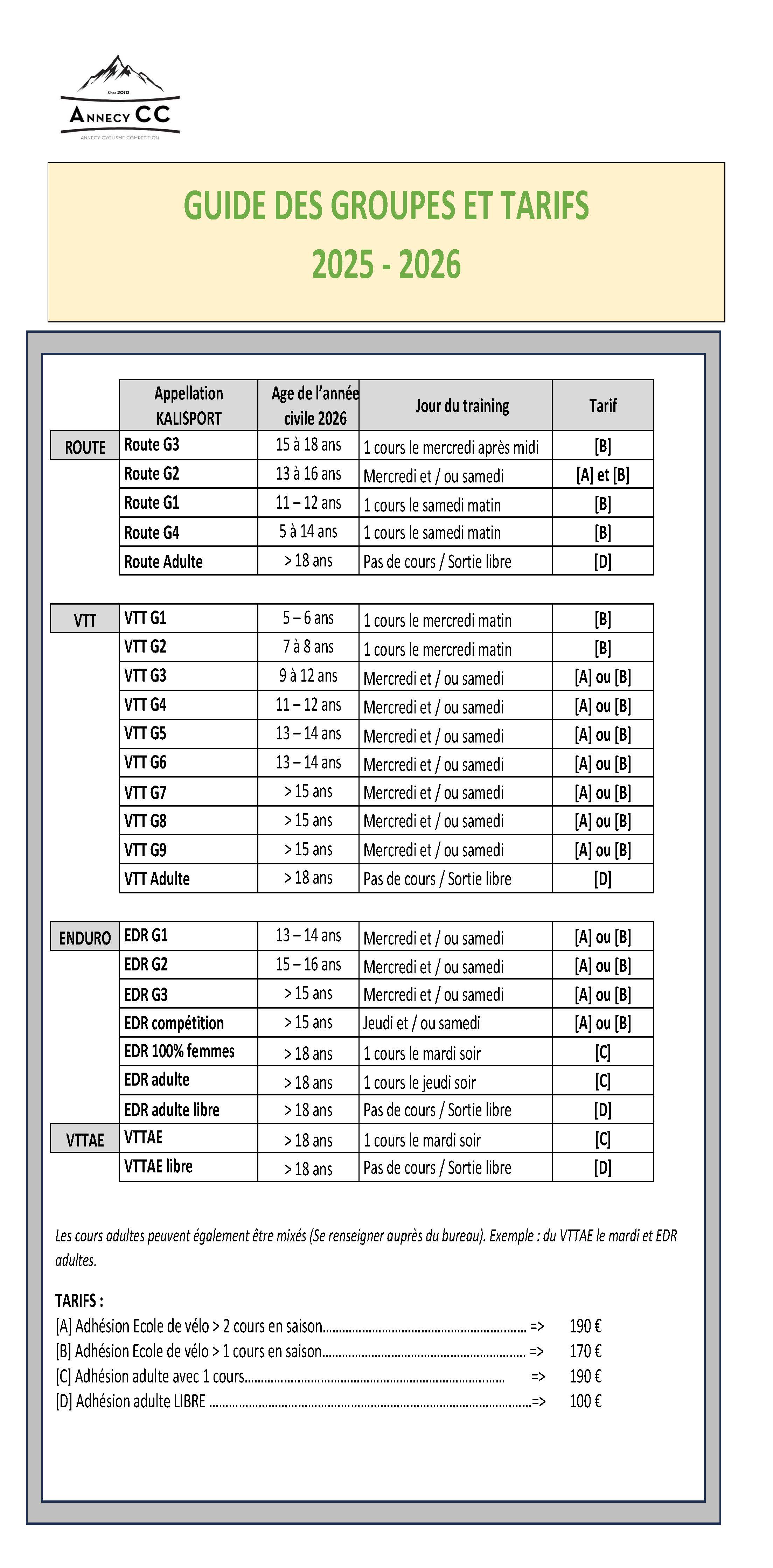 Information sections adultes
